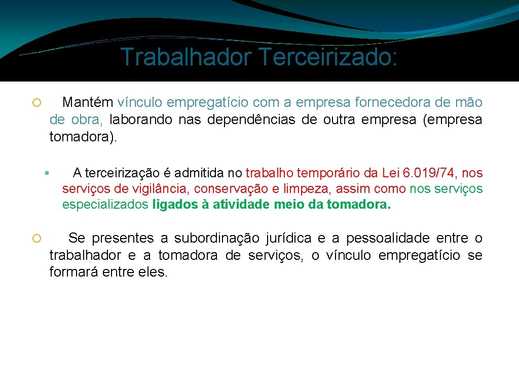 A Lei nº 134292017 regula o trabalho temporário e terceirizado no Brasil e trouxe mudanças significativas no cenário trabalhista brasileiro. Os terceirizados não se sentem valorizados no ambiente de trabalho. Trabalho Terceirizado ou Terceirização é o acordo comercial efetuado entre uma empresa contratante ou tomadora de serviços e outra contratadaou prestadora de serviços que fornece serviços especializados realizados de forma independente.
